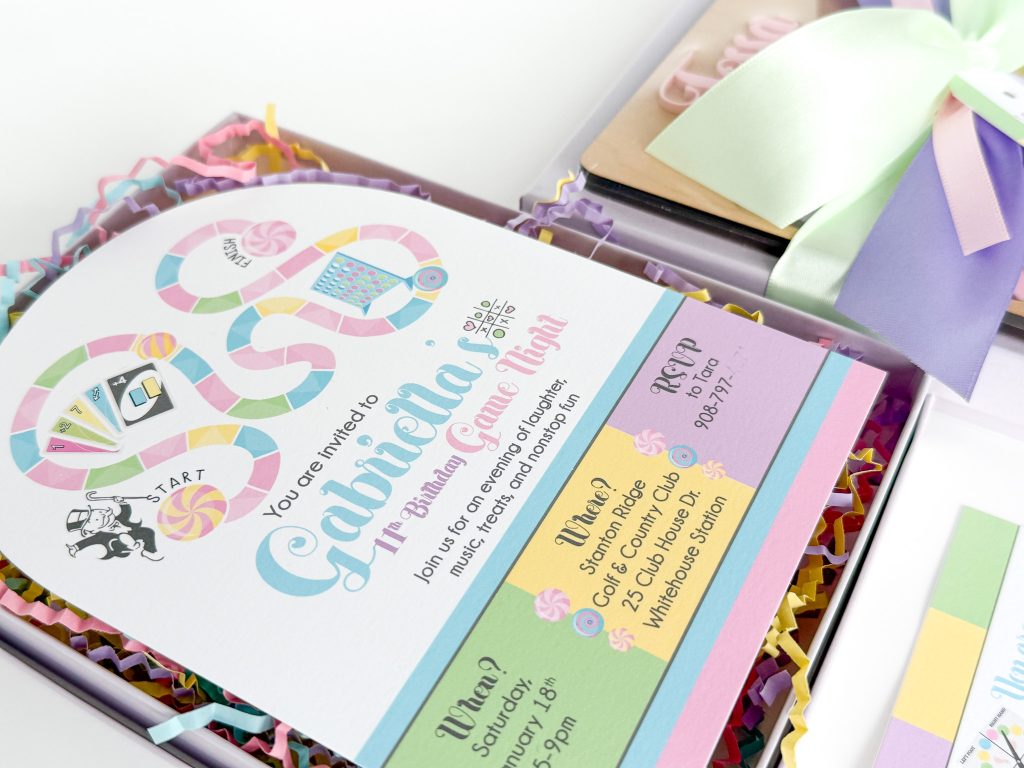 These Girly Game Night Invitations are packed with personality and pastel perfection. Each guest receives: